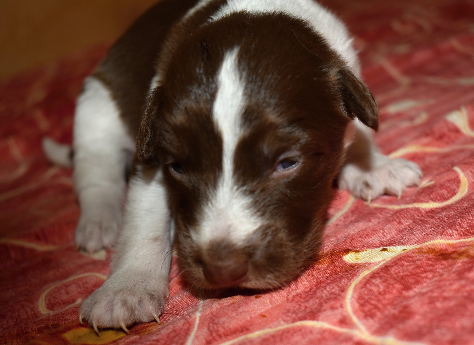 Cassian je jedinný pejsek z vrhu. Je nejmenší ale rychle přibírá na váze. :) Na předních stál již druhý den!